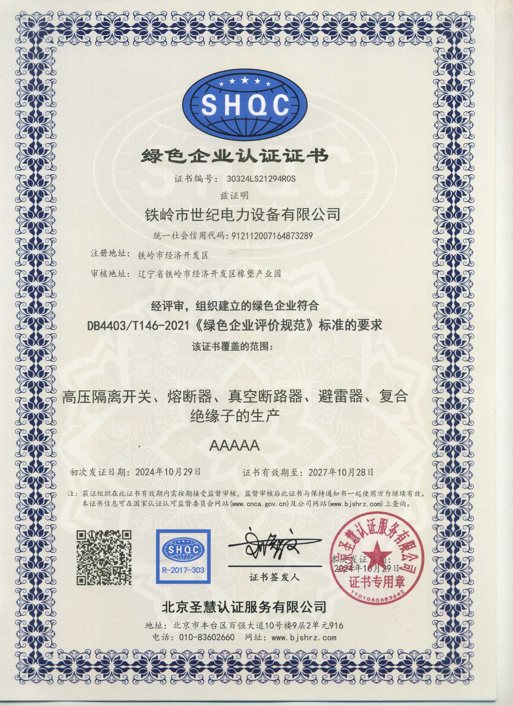 鐵嶺市世紀電力設備有限公司是集科研開發(fā)、生產制造、用戶服務于一體的國家高新技術企業(yè),始建于1999年,位于鐵嶺經濟開發(fā)區(qū),占地面積5萬余平方米,建筑面積2萬余平方米。主要從事國家電網配套戶外高低壓隔離開關、電力電纜、變壓器成套裝置、高低壓開關柜、箱式變電站、絕緣子等產品的研發(fā)、生產和銷售。公司現有國家發(fā)明專利6項、實用新型專利9項,公司通過了ISO9001國際質量管理體系認證、ISO14001環(huán)境管理體系認證和ISO 45001職業(yè)健康安全體系認證。